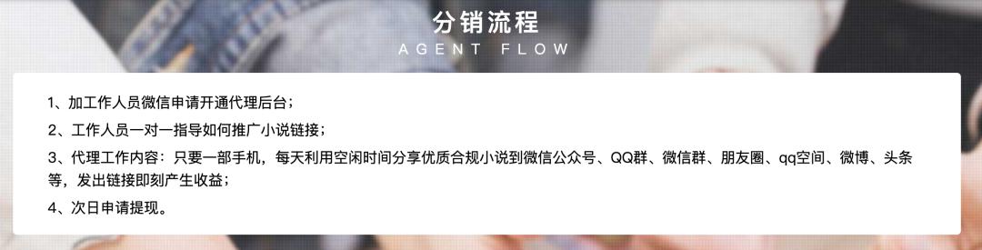 分销模式形成的是一条从内容供应方-分销商-代理-读者的产业链,但现实中更暴利灰产的玩法其实是微商的套路。