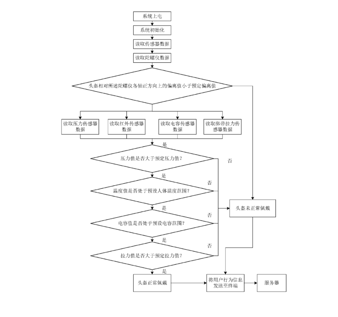 该专利显示,其涉及的是一个集成了压力传感器、温度传感器、电容传感器、绑带卡扣传感器以及陀螺仪的“高科技头盔”。其可以根据所述传感器数据,确定外卖骑手是否佩戴这件头盔,最终起到对用户的头盔佩戴状态进行检测的效果。
