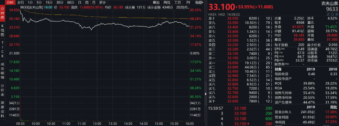 9月8日,农夫山泉(9633.HK)在港交所正式开始交易。