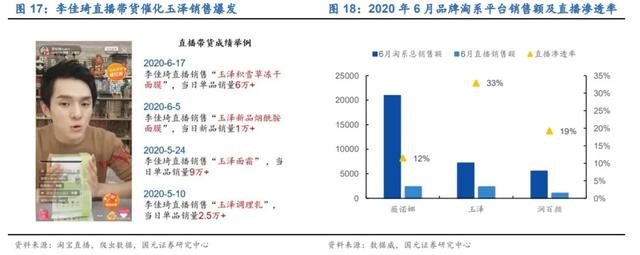 玉泽曾是李佳琦直播间的常客。美妆垂直媒体“化妆品观察”援引国盛证券研究所研报表示,今年1月到6月,玉泽共与李佳琦合作28场直播,直播日GMV占品牌总GMV约70%。618期间,玉泽更是4登李佳琦直播间。