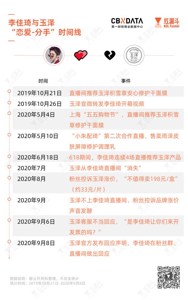 9月8日,玉泽官微发声明称曾“第一时间与李佳琦团队沟通续约,但因商务条款原因暂时未对合作达成一致”,李佳琦也在直播中回应“玉泽的产品非常好用,暂时没有合作上,也很正常,大家可以在别的渠道购买玉泽”。