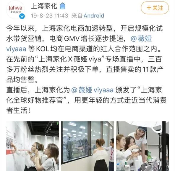 事实上,去年7月,薇娅就与玉泽背后的上海家化集团合作过一场专场直播,8月,薇娅更被家化授予“全球好物推荐官”称号。玉泽此次进入薇娅直播间,可以说是“名正言顺”。
