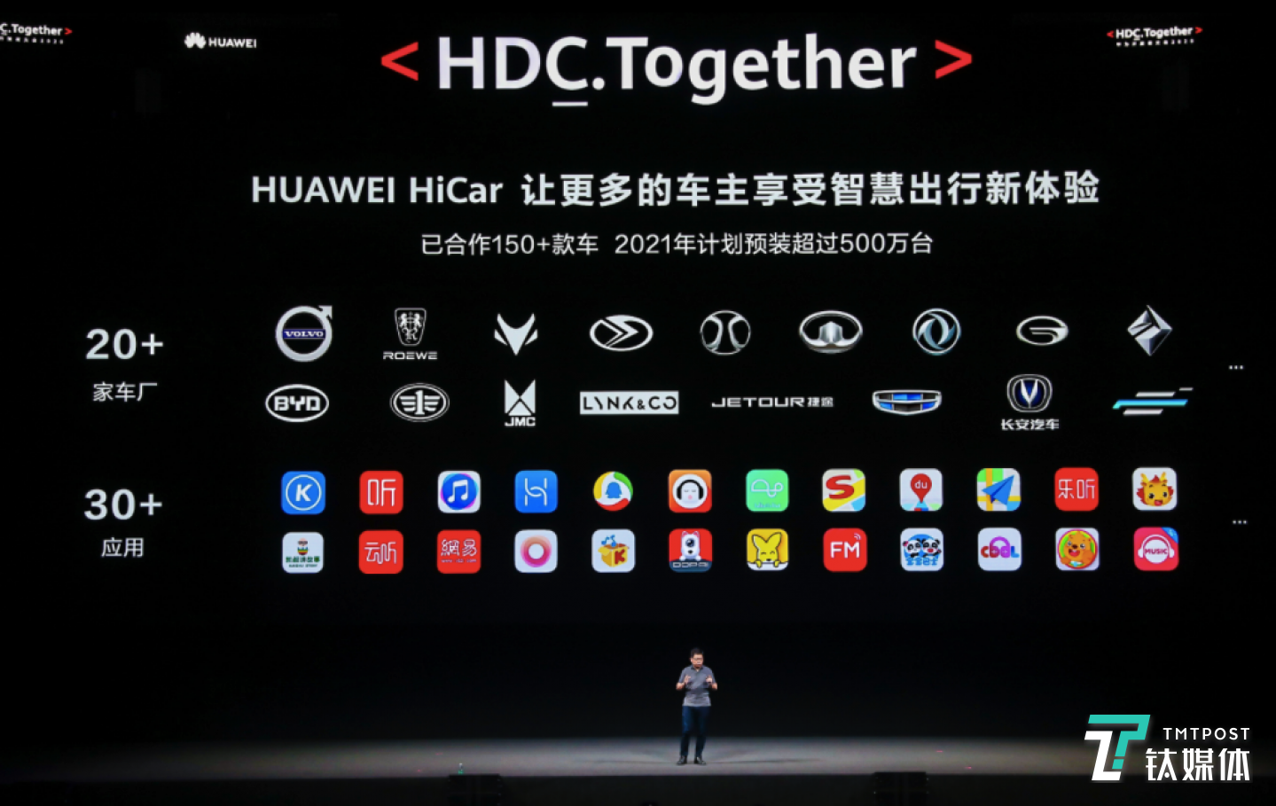 目前,HUAWEI HiCar系统内的APP已经超过30款,余承东表示预计2021年预装数量将超过500万台车。