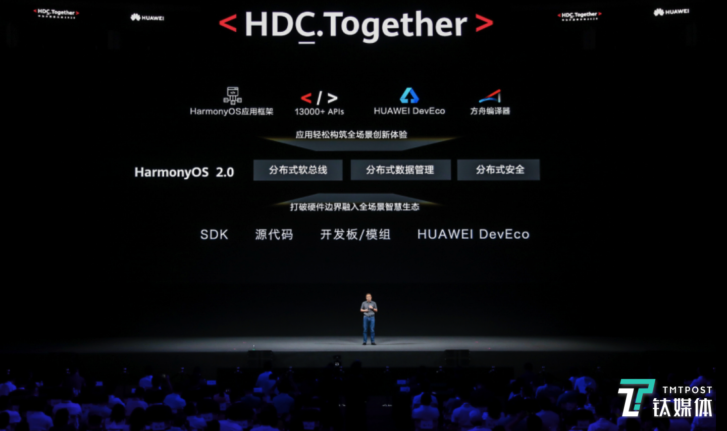 钛媒体快讯 | 9月10日消息:华为开发者大会2020(Together)在东莞松山湖拉开帷幕。在大会的主题演讲中,华为带来了HarmonyOS 2.0、EMUI 11、HMS、HUAWEI HiLink、HUAWEI Research等一系列创新发布。