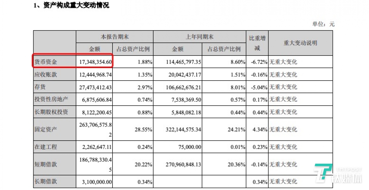 根据年中报显示,截止2020年6月30日,天山生物货币资金余额为1734.84万元,天山生物表示,若该诉讼结果不利于公司,可能加剧公司现金流压力,存在资金链紧张的风险。同时,如果法院采取保全措施,公司存在资产或者银行账户被查封或者冻结的风险。