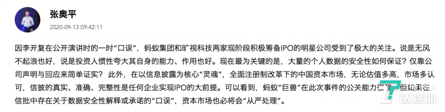 这番言论立即引发市场争议,蚂蚁金服和旷视科技两家现阶段积极筹备上市的明星公司也被顶上了热搜。