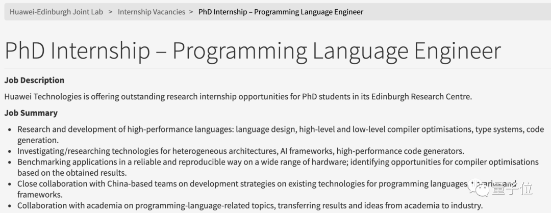 而就在今年,华为在爱丁堡大学成立了编程语言实验室(Programming Languages Lab),又找了Dan R. Ghica做总监,目前,这个实验室已经在招聘编程语言工程师的博士实习生。