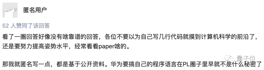 目前这件事尚未得到官方证实,但据知乎@匿名用户 透露,华为有意研究自己的程序语言,在行业内早已是公开的秘密。