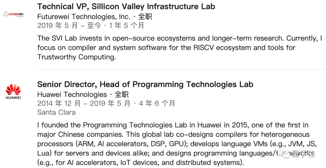 据Peng Wu在领英上的资料,她于2014年12月加入华为编译器Programming Technologies Lab任资深总监,并于2019年5月加入华为的美国子公司Futurewei,担任技术总监,负责编程语言的设计、编译器框架的设计。