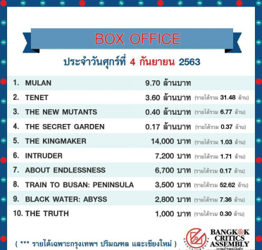 9月4日《花木兰》在泰国上映第一周就打破了泰国今年首映票房记录。而在中国港台地区,尽管因为被政治议题绑架遭遇了网友抵制,影片在台湾上映的首个周末票房也达到3400万台币,登上新片票房冠军。