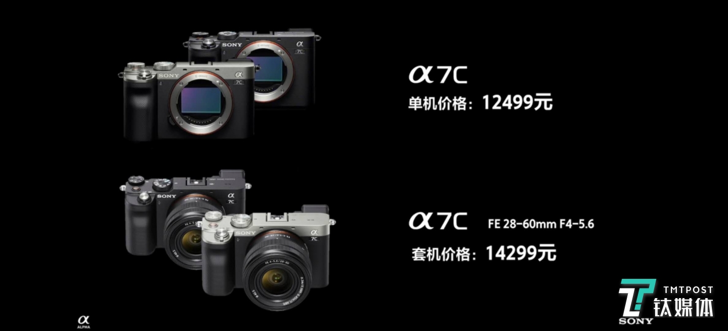 售价方面,索尼全画幅微单Alpha 7C将于2020年9月下旬上市,售价为12,499元人民币;Alpha 7C标准变焦镜头FE 28-60mm F4-5.6套装也将同步上市,售价为14,299元人民币;FE 28-60mm F4-5.6单镜头将于2021年初上市,售价为3,299元;闪光灯HVL-F28RM将于2020年11月下旬上市,售价为2,200元人民币。(本文首发钛媒体APP,作者/Kiwi)