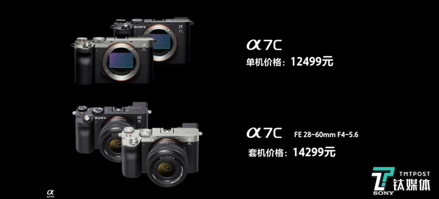 售价方面,索尼全画幅微单Alpha 7C将于2020年9月下旬上市,售价为12,499元人民币;Alpha 7C标准变焦镜头FE 28-60mm F4-5.6套装也将同步上市,售价为14,299元人民币;FE 28-60mm F4-5.6单镜头将于2021年初上市,售价为3,299元;闪光灯HVL-F28RM将于2020年11月下旬上市,售价为2,200元人民币。(本文首发钛媒体APP,作者/Kiwi)
