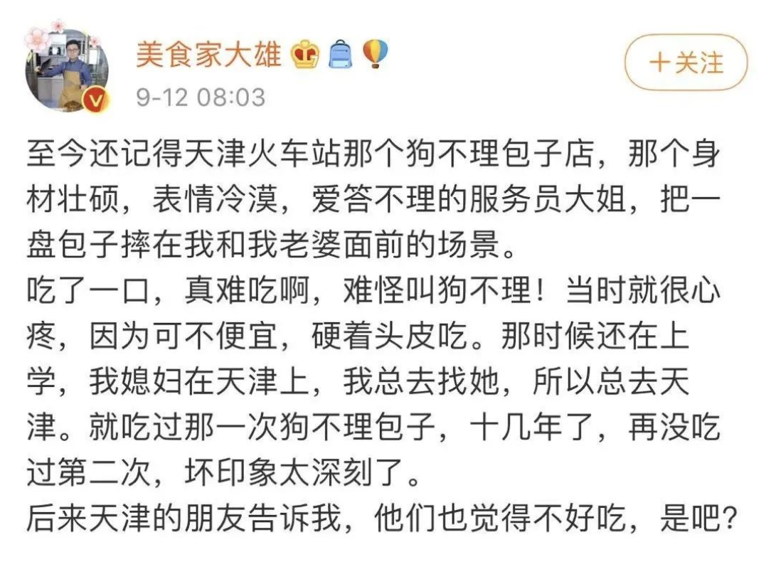 作为与麻花、煎饼果子并列的天津知名美食,狗不理包子曾经享誉中外,至今仍是游客心中前往天津必须体验的美食之一。只是,不知道从何时开始,所有的天津本地人,以及体验过狗不理包子的人,都会建议游客们放弃这一想法,甚至有天津人表示狗不理“给天津丢人”“不如倒闭”。![]()