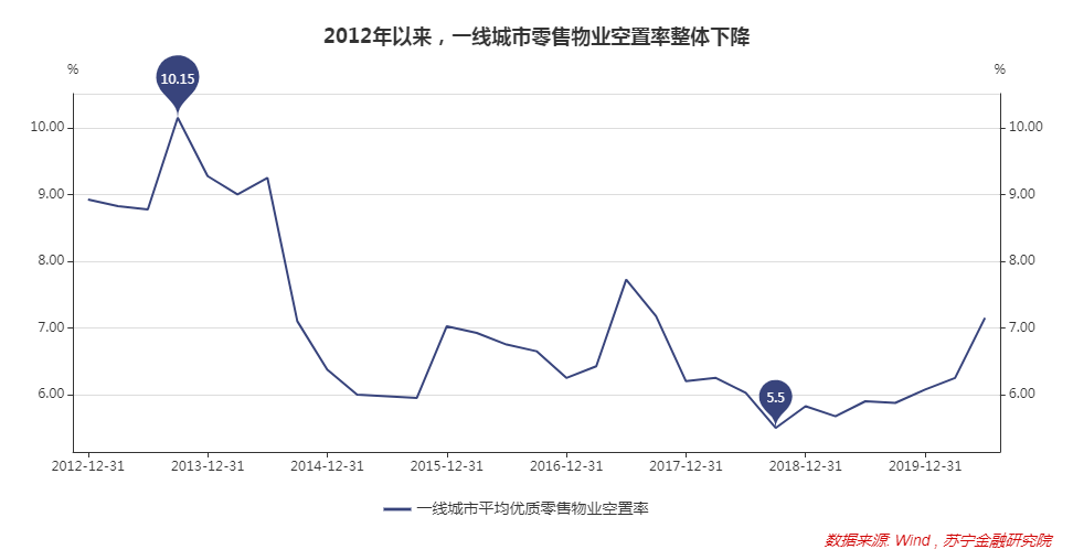 2012-2018年,一线城市优质零售物业空置率整体下滑,租赁成本整体上升。2019年以来,大量企业退出,零售物业空置率快速提升,租赁成本才得到有效控制,但整体仍处于较高水平。中长期来看,只有坚持房住不炒,控住房价,才能控住租金。