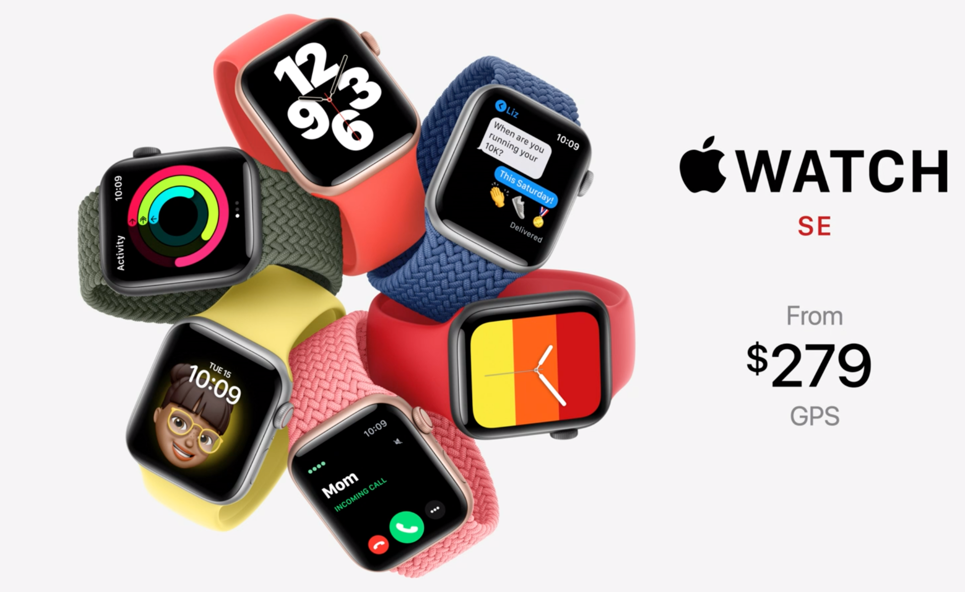 除了顶级的智能手表外,苹果同时发布了一款Apple Watch SE。从命名上就可以判断,这是一款平价苹果手表。