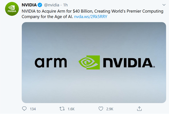 日前,绘图芯片制造商英伟达(Nvidia)又宣布,将斥资 400 亿美元收购软银旗下半导体设计公司Arm,创下芯片业史上最大并购金额记录。
