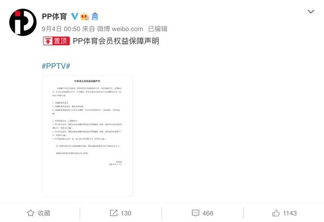 双方合作的突然结束,令众多刚刚购买了PP体育英超新赛季会员的球迷们,感到不知所措。不过,9月4日凌晨0点50分,PP体育便通过官方微博公布了会员权益保障声明,将为英超新赛季会员、体育高级会员、足球通会员提供或退款、或延期的保障方案。