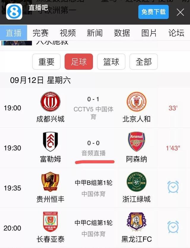 9月12日当晚直播吧首页,鲜明标志出了「音频直播」字样