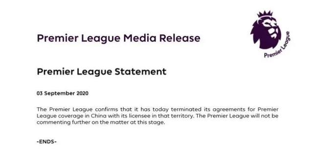 而PP体育也随即发布声明,宣布与英超进行了解约。