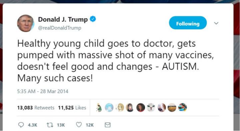 同时由于特朗普政府在防治新冠疫情上面的各种政策摇摆和失误,而且特朗普本人也被曝出在更早之前宣称“疫苗会导致自闭症”的观点,这些都导致广大民众对于“仓促”上马和推出的新冠疫苗会不会真的有效甚至是有害。
