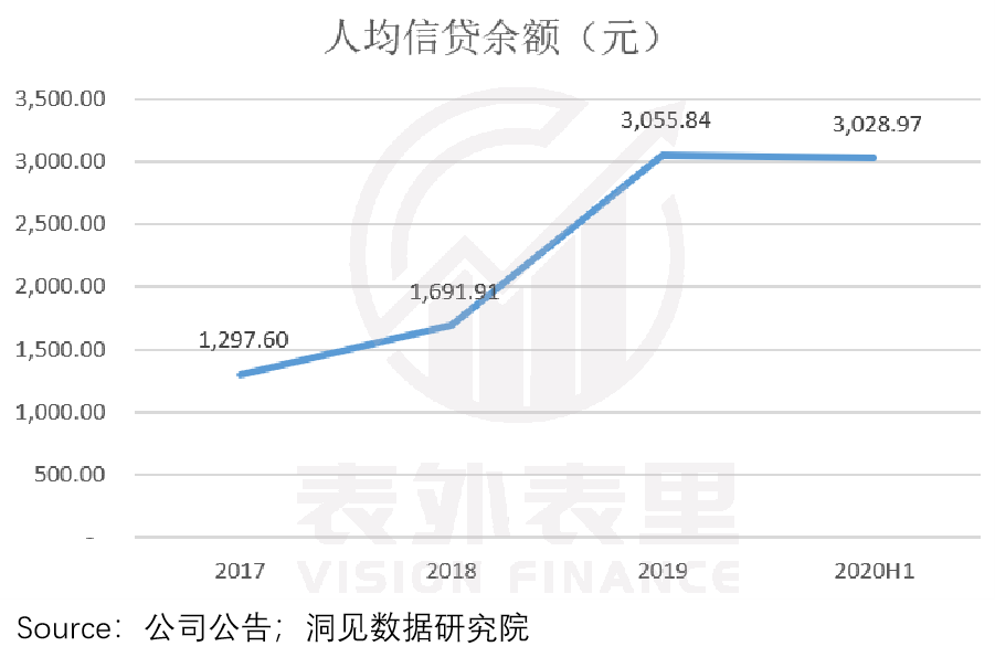 尽管在用户规模大幅增长的情况下,蚂蚁集团实时调控风险,没有让平台的人均信贷余额随之提升。
