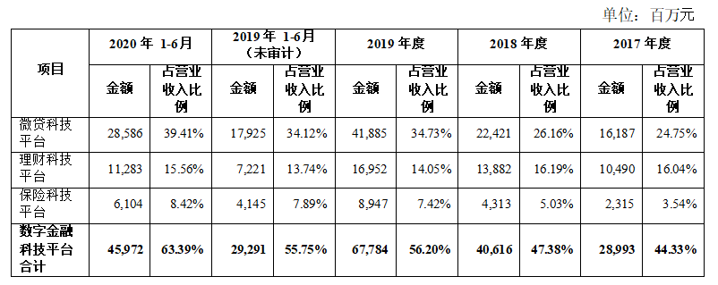 招股书显示:从2019年开始,蚂蚁集团覆盖花呗、借呗等借贷业务的“数字金融科技平台”收入占比超过支付业务,成为收入大头。
