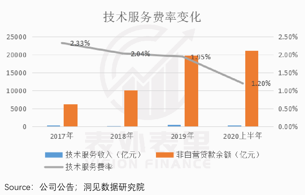 表外表里认为,在信贷质量下降的情况下,金融机构或许会要求蚂蚁集团与他们共担风险,但不会影响资产质量。反映在收入里,可能体现为蚂蚁的技术服务费率下降。接下来,表外表里将通过具体计算来论证。