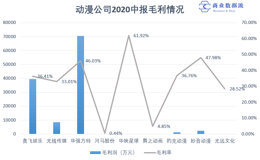 受全球疫情影响,奥飞娱乐的玩具销售和电视媒体业务的营收均有30%以上的下滑。主要的动漫项目集中在下半年,上半年的业绩较差;因春节档电影《熊出没》的延迟上映,华强方特的数字动漫业务收入较上年同期减少 2.32亿,降幅为74.51%。主题乐园暂停营业后,该业务的营收也降低了26.96%。