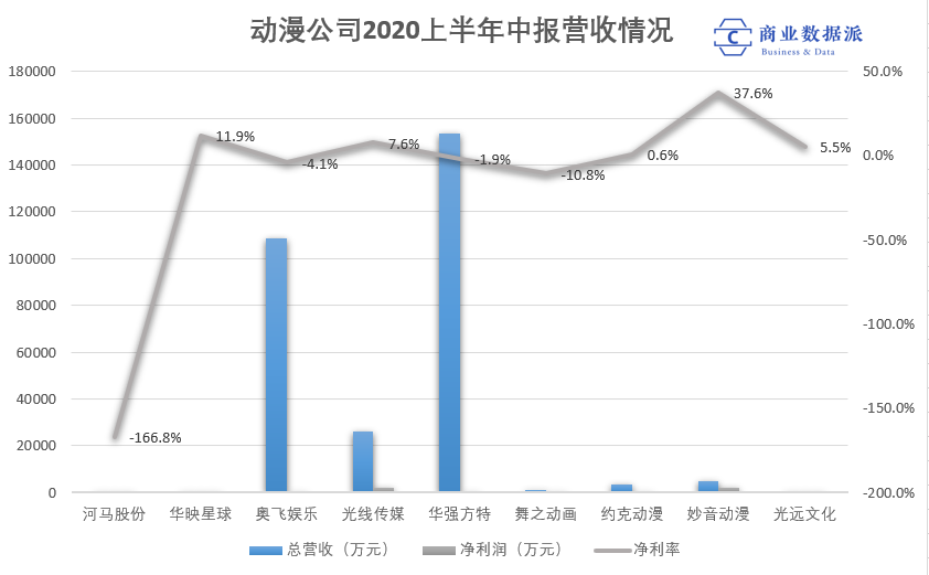 先来看上市公司,根据中报来看,净利润超过1000万的仅有光线传媒和妙音动漫。