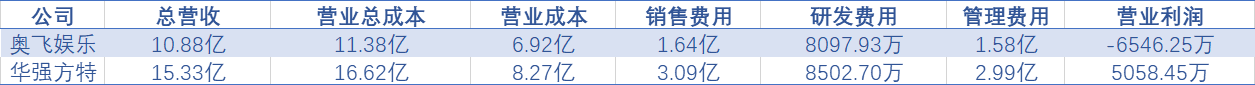 奥飞娱乐上半年净利润为-4499.32万,华强方特净利润为-2912.34万,降幅均超过100%,亏损较为严重。