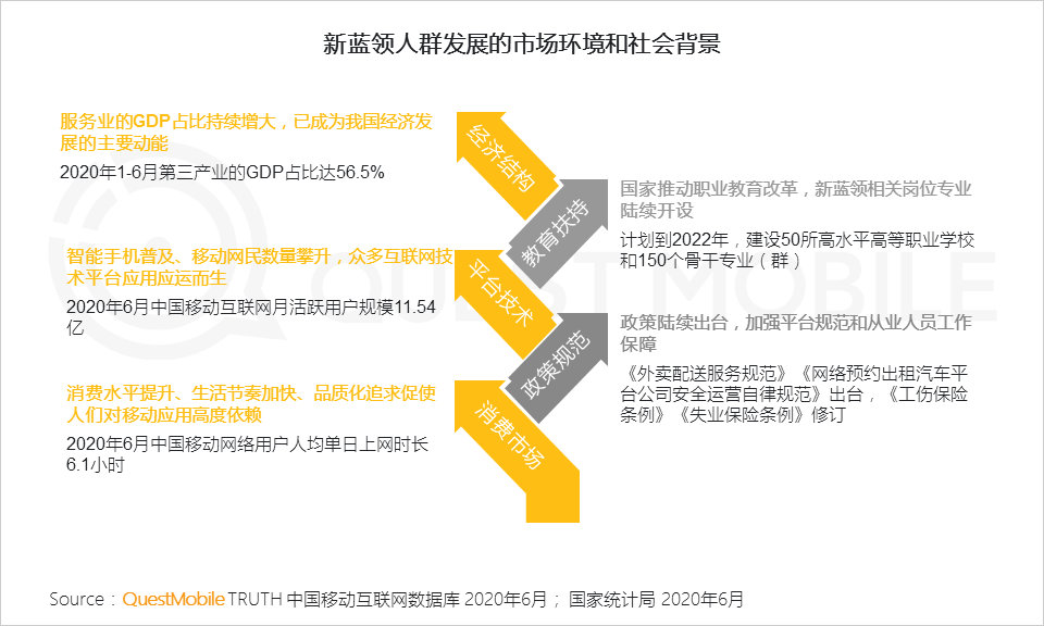2、市场环境的各方面因素在助推新蓝领人群快速发展的同时,也在不断带动新蓝领群体向规范化、职业化方向前行