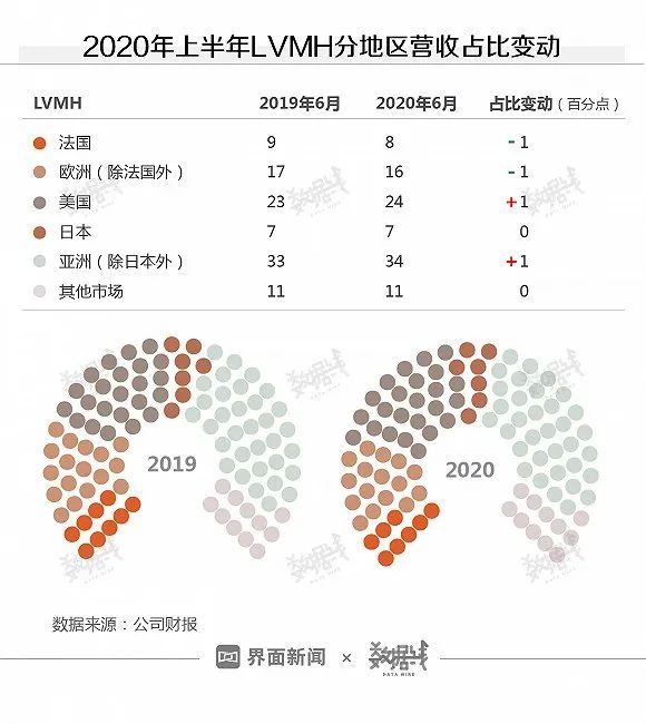 对于LVMH而言,美国和亚洲(除日本外)仍然是主要阵地,且有继续扩大的势头。除日本和其他市场营收占比未有变动外,欧洲地区营收占比有所下降。