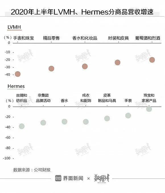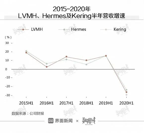 从公司财报数据来看,今年上半年,LVMH和爱马仕(Hermes)营收均同比下跌超20%,为近5年来首次。