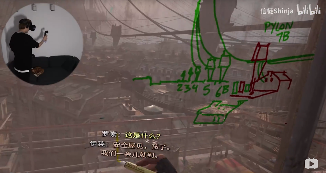 在一处典型的推门迎敌场景中,玩家不再是从一个场景传送到另一个场景,而是可以用一只手把门推开一半,然后用另一只手将武器伸到门外朝敌人射击,当听到敌人反击后再赶紧把门关上寻找掩护,V社将无缝衔接的理念推进到了每一处细节里。