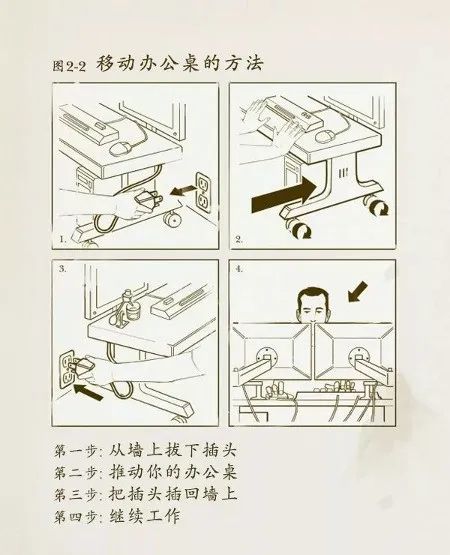 在手册的第6页,热心的前辈会解答“你的办公桌为什么会有轮子?”这个问题。