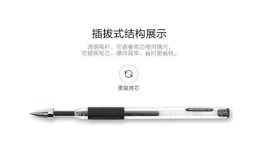 但是,当年它的创新还是有突破性的,在此之前,中国的中性笔是插拔款的。而按动式比插拔款使用起来方便。