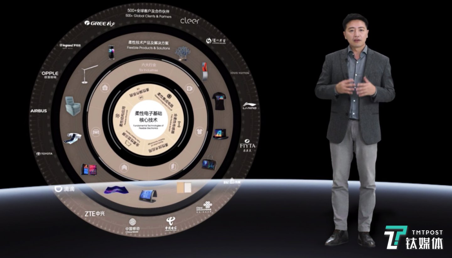 他表示:“柔宇要构建一个“柔性星球”,其中有柔性显示屏、柔性传感器还有其他的柔性器件,这是一个土壤,里面会长出各种不同的花果树木和果实,这都是在不同行业中的应用。”