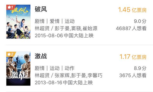 更主要的问题在于票房市场,目前猫眼对《夺冠》总票房预测是8.44亿,灯塔上媒体平均预测票房是9.41亿。近10年,国内电影市场上取得票房成功的体育运动题材电影少之又少,国产电影中仅《破风》《激战》两部运动题材电影破亿,扩大“体育”的范围,算上《飞驰人生》(赛车题材),在市场上砸出水花的体育电影也是寥寥可数。