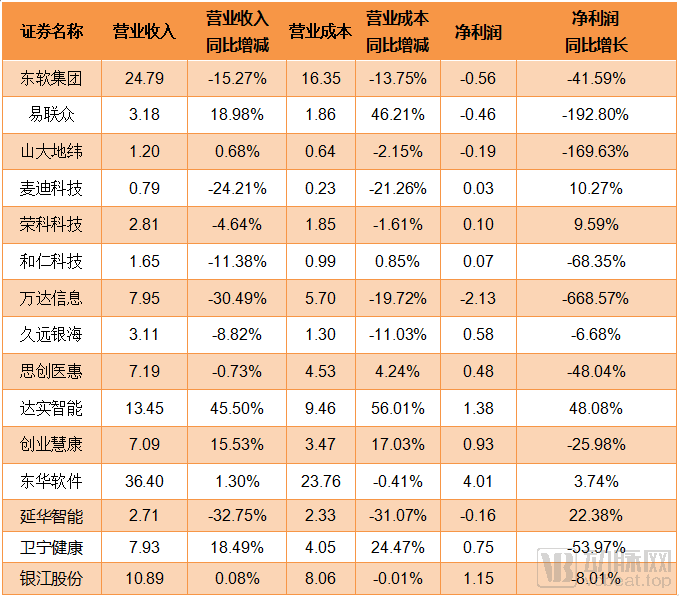 信息化企业2020年年中报财务数据简述(单位:亿元)