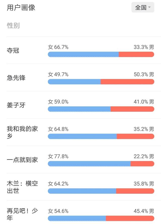 此外,其他国庆档影片在题材上也呈现出明显的差异化。《夺冠》对准体育题材、“封神宇宙”的《姜子牙》侧重成人向动画、《急先锋》是今年唯一一部动作片、《一点就到家》从“小人物”切入年轻人创业、《再见吧!少年》则关注家庭和成长……差异化的题材布局之下,影片所面向的受众群体也指向了不同的市场,更易实现票房空间最大化。