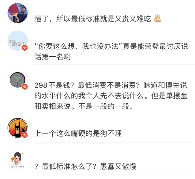 此番回应一出,厉家菜再度被置于风口浪尖。网友纷纷质疑,难道最低标准就是又贵又难吃?并指店家“愚蠢又傲慢”。