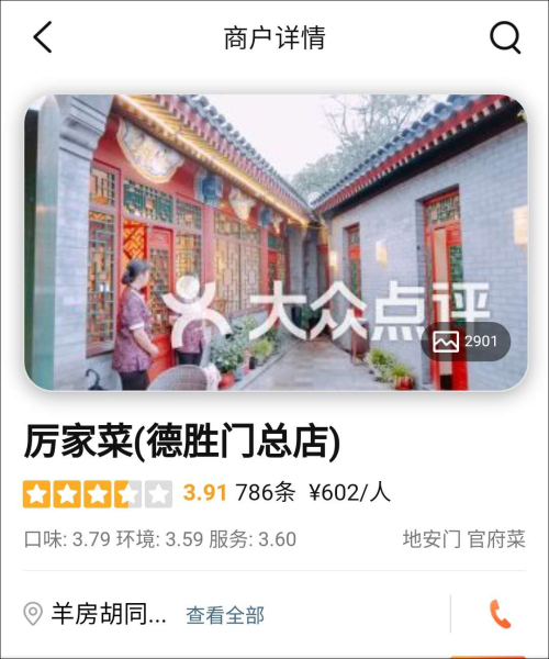 此次被网友吐槽的这家厉家菜德胜门总店,就是由厉善麟的长女厉爱茵负责。在大众点评上,这家厉家菜德胜门总店评分为3.91,人均602元。