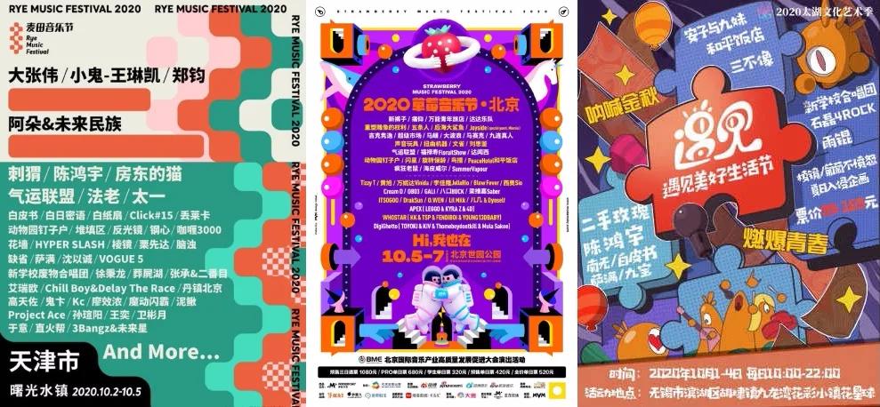 另一个有趣的现象是,根据大麦统计,整个国庆期间复工的音乐节超过了20场,其中仅江浙沪包邮区的音乐节就有6场,最远到了青海和内蒙古乌兰察布。而且这些音乐节的阵容可以说都很强,李宇春、吴亦凡等明星和朴树、郑钧、新裤子、痛仰等音乐节常客都在。其中大部分的票上线之后快速售罄。由此来看,演唱会重开应该也只是时间问题了。