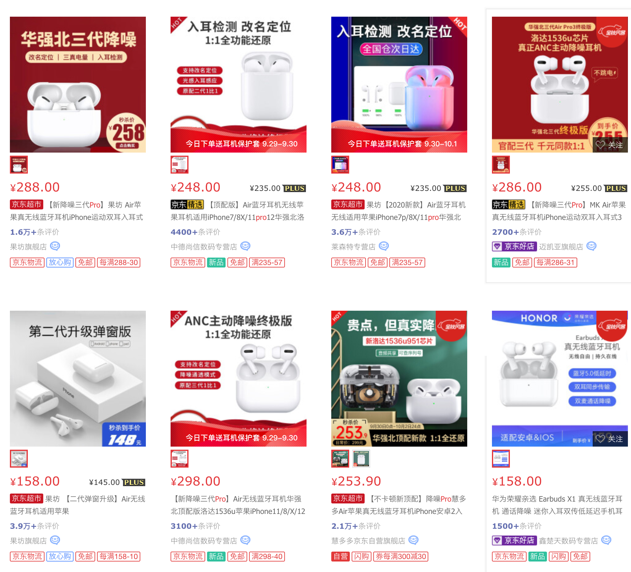由于苹果AirPods和AirPods Pro的官方定价达到1246和1999元,自然也给了这些“白牌”产品以极大的市场存活空间。