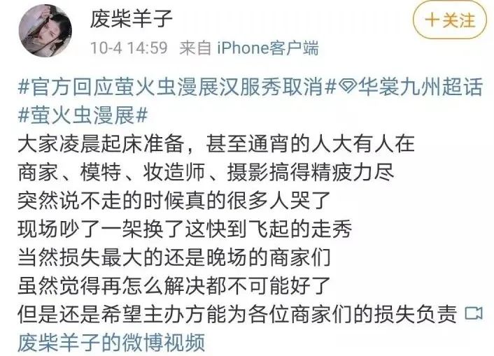 虽说更多的指责声都指向萤火虫漫展,但仅从汉服圈来看,仍是华裳九州面临的危机更大。