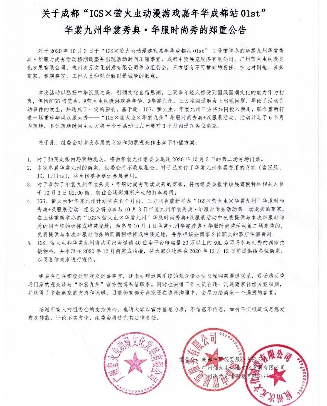 如此结果,萤火虫漫展和华裳九州都难逃其咎。