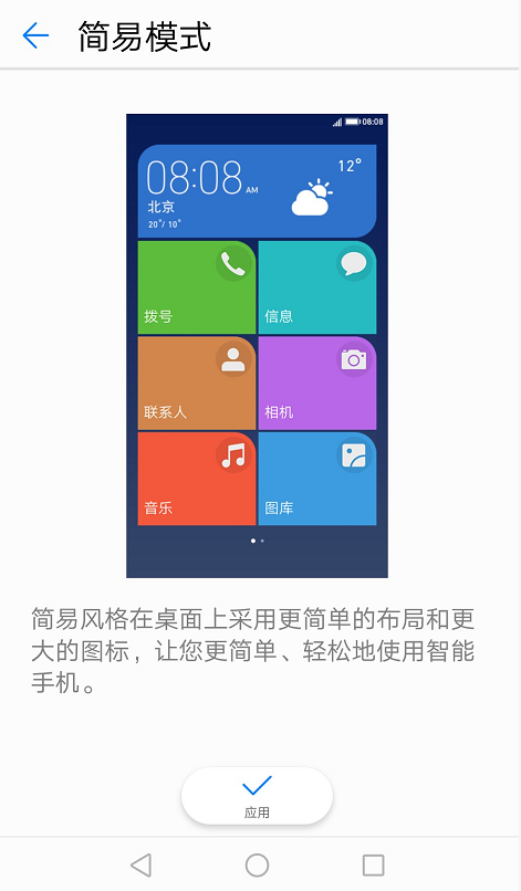 华为手机中的简易模式,图/新浪科技