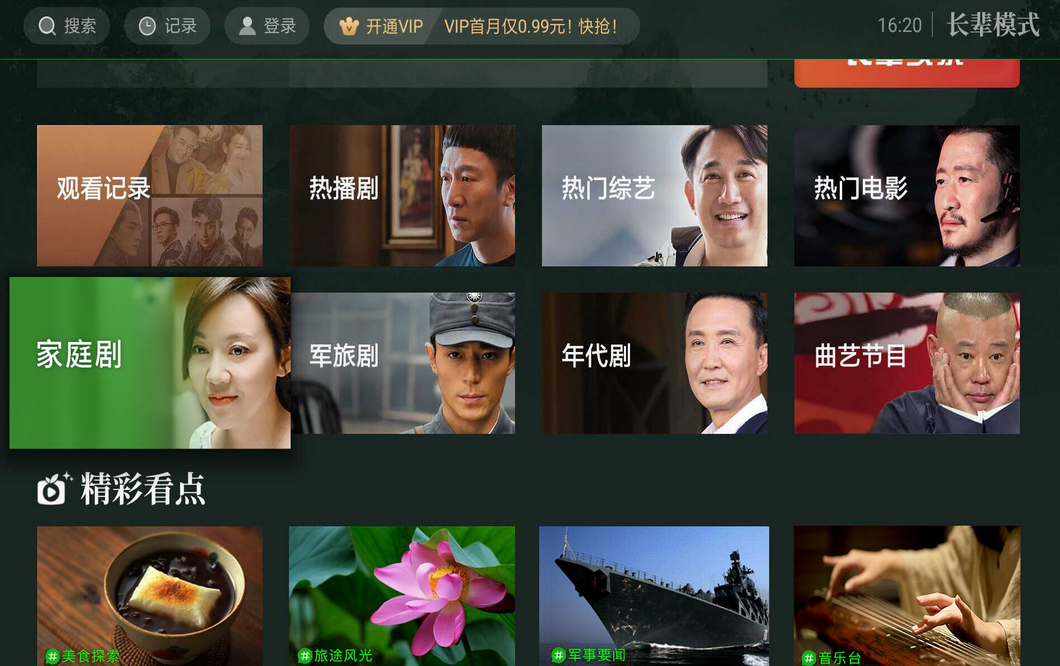 爱奇艺旗下智能电视应用奇异果TV去年推出了“AI长辈模式”,除了专属页面、无交互自动播放等设计,还增添了远程子女代登录、亲情付功能。