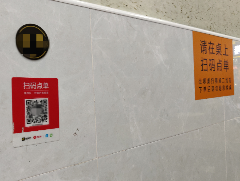 餐饮门店内的“扫码点单”标识。图/新浪科技
