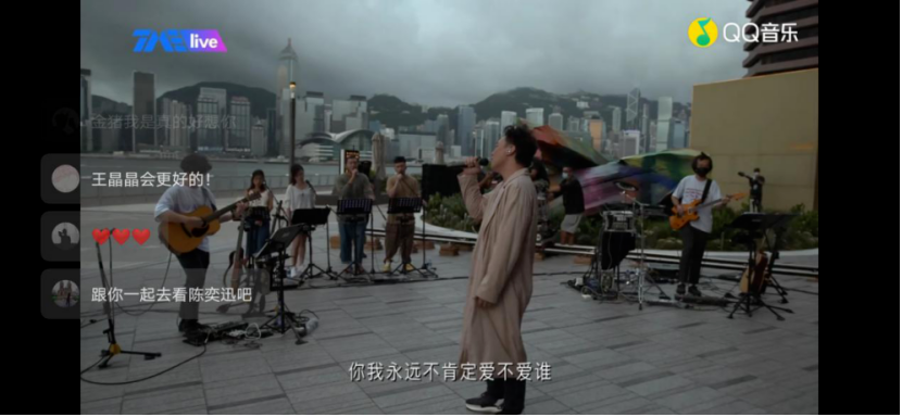 而在视觉上,线上演出也有着更加自如的调度。如云上live的魏如萱音乐会,在优美的花园、浴室和图书馆等不同环境中,以特写、近景、长镜头等带有鲜明电影感的视觉语言串联全场;TMElive的“乐队的夏天线上演唱会”,五条人乐队更是直接把舞台摆在了海边;更著名的如此前陈奕迅的慈善音乐会,舞台直接放在维多利亚港。